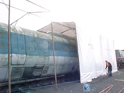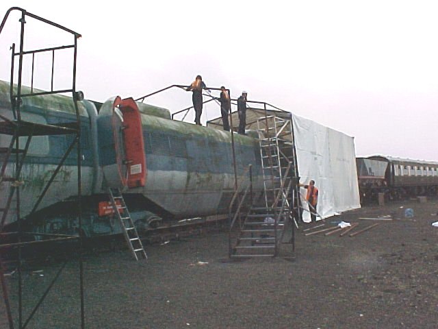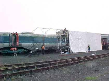 During this workday, work proceeded a pace on the tent cover.